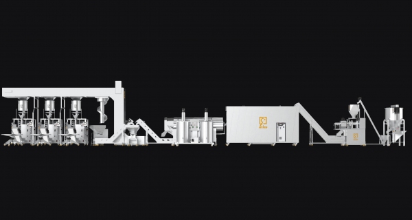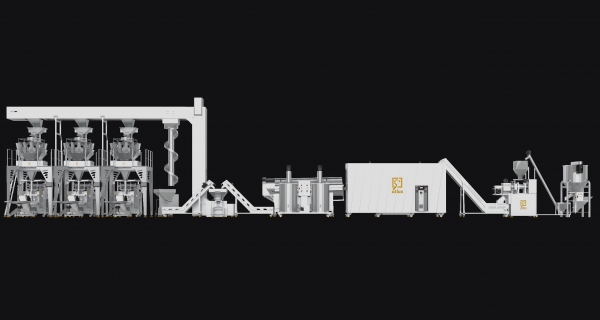 Pellet chips frying line 250 k/h with three weighing packaging machines