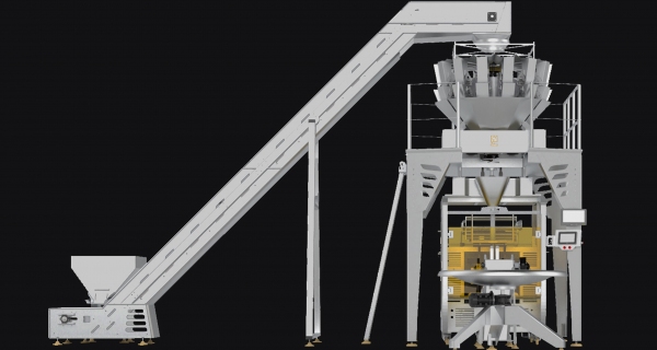 Packaging machine with 14 weighing heads
