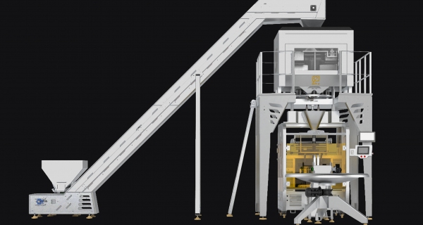 Popcorn production line with two volumetric packaging machines